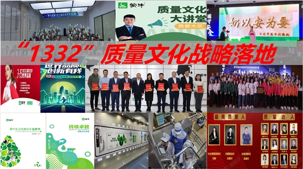 2022年,蒙牛乳业致力于全面构建卓越的质量文化,以“点滴营养,呵护每个生命”的使命和“草原牛、世界牛、全球最爱、滋养20亿消费者”的愿景为指导,坚持以“消费者至上、创新无限、人才为本、正直诚信、质量领先”为核心价值观。秉承“六大质量价值观”和“十大质量行为准则”,在借鉴国内外先进标准和实践的基础上,制定了“1332”质量文化战略,全员参与、全面覆盖、全流程推进质量文化建设。