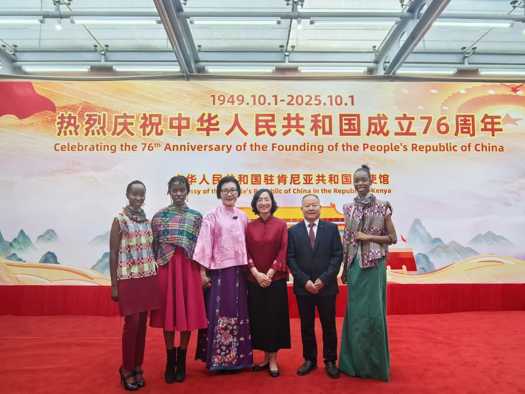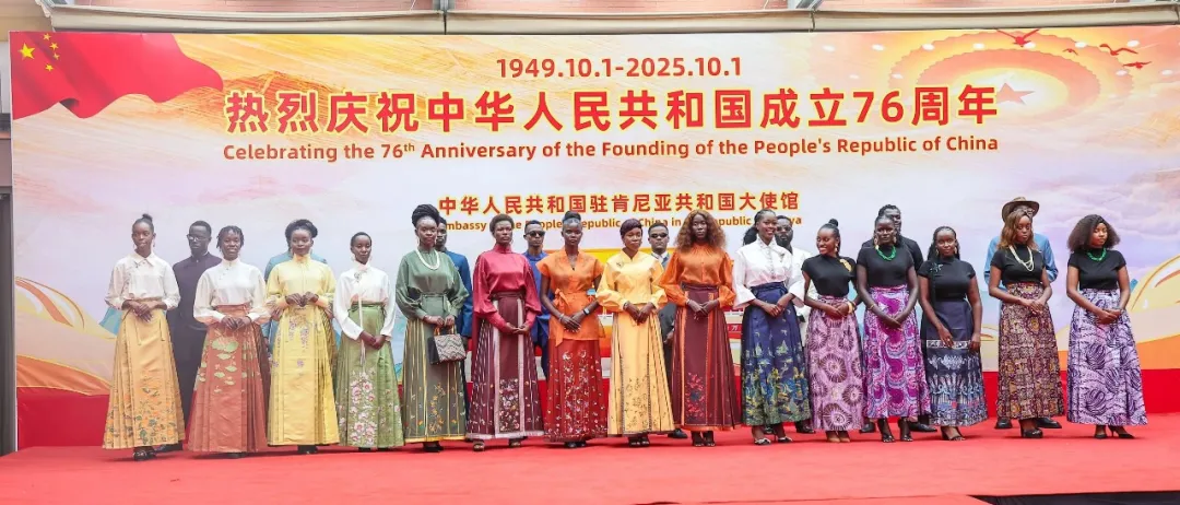 受中华人民共和国驻肯尼亚大使馆邀请,山东省服装设计协会与山东柳疃家用纺织品股份有限公司携手,将鲁锦非遗马面裙带至非洲,为中非400余名嘉宾呈现了一场主题为“非凡中国美—锦绣华裳”的时尚大秀,以此庆祝中华人民共和国成立76周年。