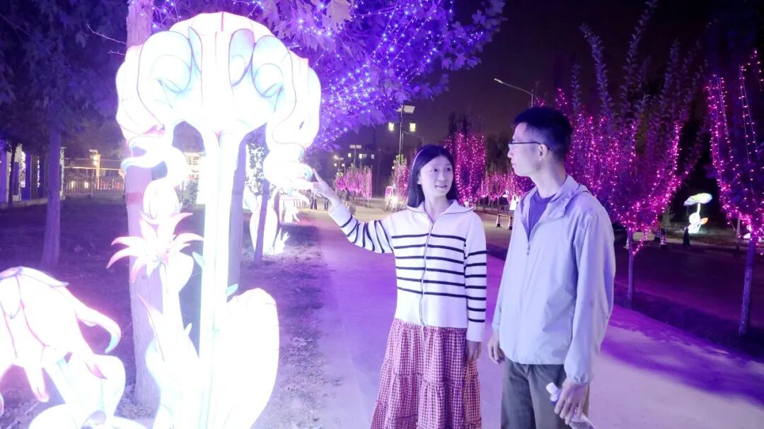 莎车县第一中学学生努尔曼古丽•吐尔孙说:“平时忙学习很少外出,趁着国庆假期来逛公园,五颜六色的花灯特别好看,整个人都放松了很多。”
