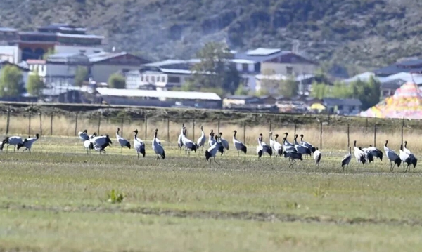 10月15日,纳帕海省级自然保护区管护局工作人员监测发现,今年首批越冬黑颈鹤已飞抵云南省迪庆州香格里拉市纳帕海,开启一年一度的候鸟越冬迁徙季。15日上午监测到黑颈鹤8只,其中2只为今年在纳帕海度夏的留守鸟,6只为越冬黑颈鹤的“先遣部队”,15日下午飞抵73只,截至目前越冬黑颈鹤飞抵79只。随着气温的下降,黑颈鹤的“大部队”将陆续飞抵纳帕海。