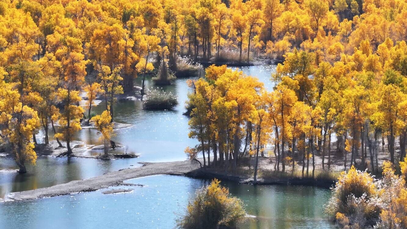 近日,新疆民丰县境内的49万亩原始胡杨林迎来一年中最绚烂的观赏季。金黄的胡杨叶在阳光下熠熠生辉,与蓝天、大漠、河流及栖息的鸟儿交相辉映,勾勒出一幅壮阔的秋日画卷,吸引了全国各地的游客慕名前来打卡赏景。