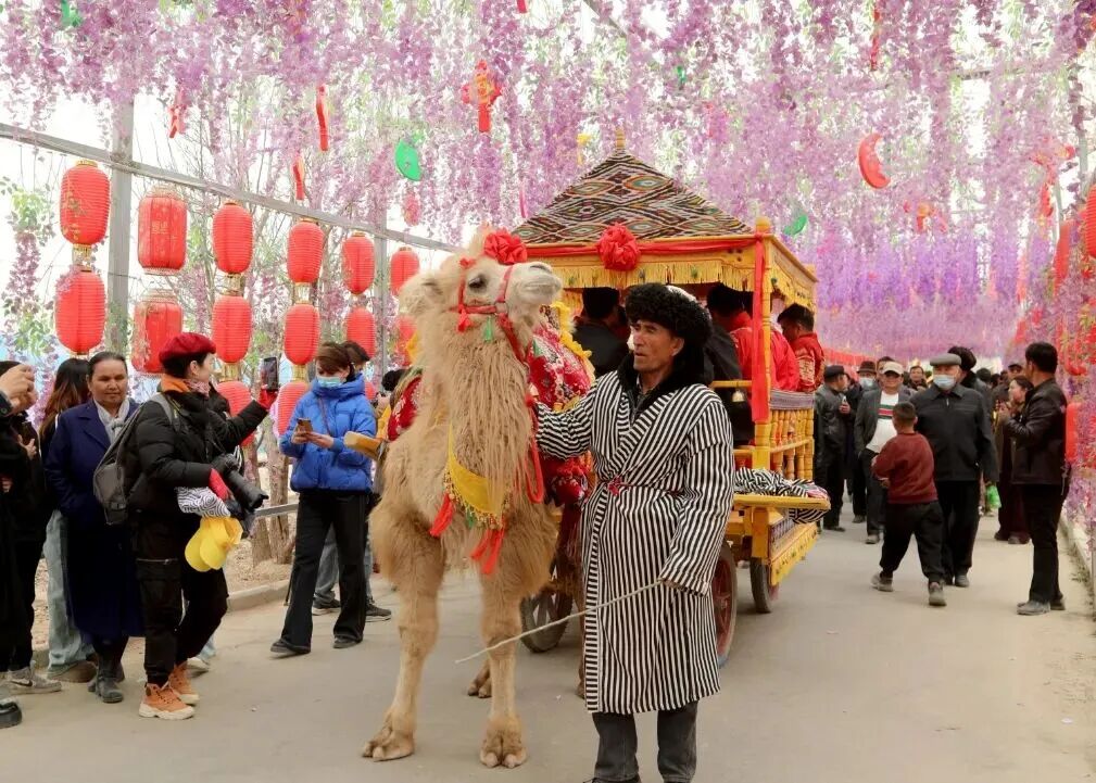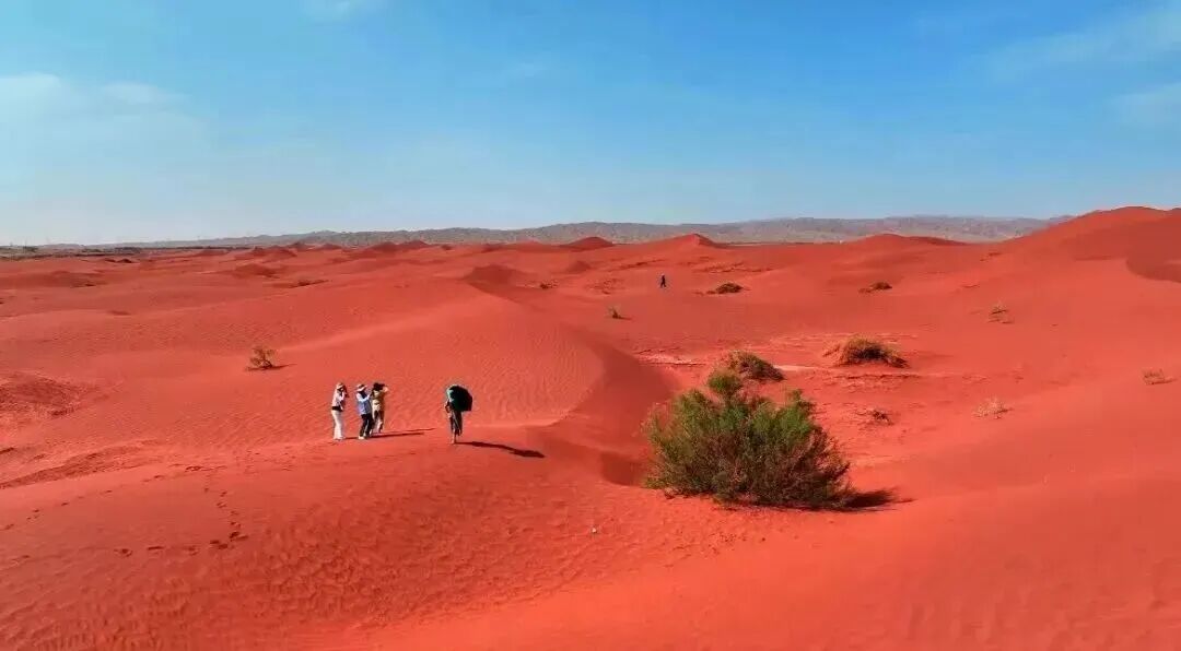 夏日的阳光洒在黄杏园,金黄的果实压弯枝头,“黄杏采摘季”如期而至。披着艾德莱斯绸的骆驼穿行林间,游客既可体验采摘乐趣,又可骑行骆驼感受美景。傍晚时分,前往柯坪红沙漠景区,这里的沙丘如火焰般燃烧,在阳光的照射下,沙丘呈现出瑰丽的红色,美不胜收。